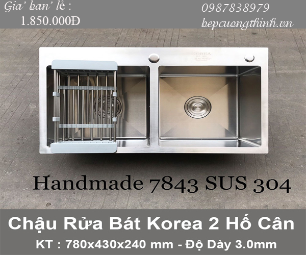 Chậu rửa bát Korea 7843 có thiết kế sang trọng đang được khách hàng tin dùng nhất hiện nay. Đây là mẫu chậu có kích thước phổ thông phù hợp mọi không gian bếp như nhà đất hoặc căn hộ chung cư với kích thước cắt đá là 750x400mm đây là kích thước khá lý tưởng cho căn bếp nhà bạn.